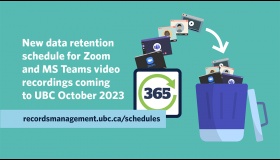 In October 2023, UBC will implement an automated one-year retention policy for video recordings. This data retention schedule will affect all faculty, staff and student employees at both UBC Vancouver and UBC Okanagan campuses.