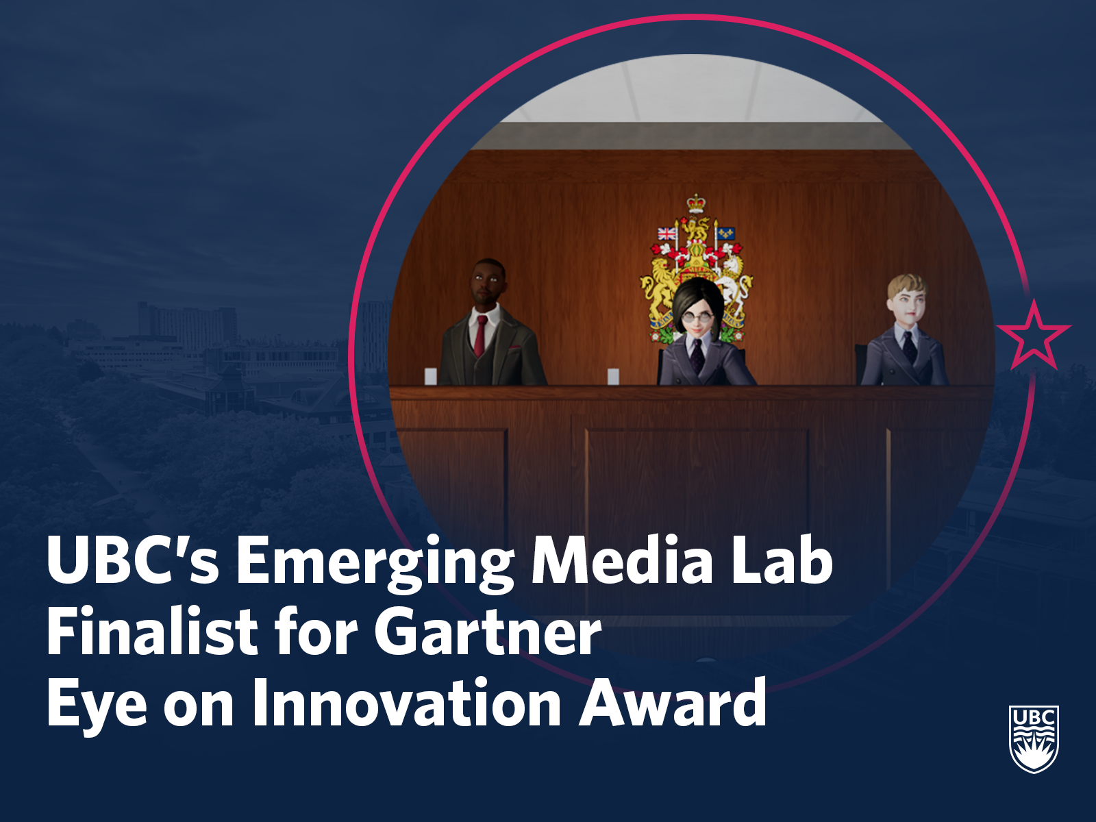 This October, Emerging Media Lab’s (EML) Judicial Interrogatory Simulator was chosen as a finalist for the 2024 Gartner Eye on Innovation Awards for Education, recognizing EML in the Higher Education Innovation in Teaching and Learning category. The Judicial Interrogatory Simulator (JIS) leverages new technologies including Generative AI and Virtual Reality to provide an immersive moot court experience to help first-year law students practice presenting their arguments in court. With this year marking a record number of submissions for Gartner’s Eye on Innovation Awards, being named as a finalist highlights the groundbreaking work of UBC’s creative thinkers.