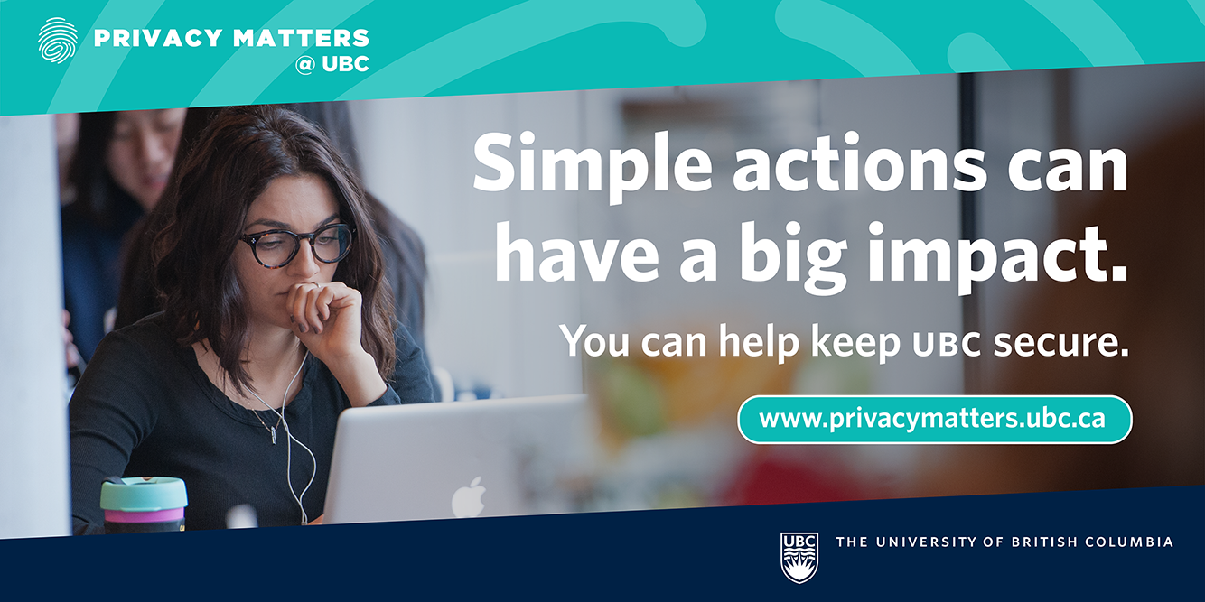 At UBC, we are responsible for a substantial amount of personal information about students, faculty, alumni, donors, and employees. Protecting this information is a shared responsibility. Privacy Matters @ UBC, created as a joint effort between Office of the University Counsel, Risk Management Services, and Information Technology, is a new initiative focused on privacy and information security best practices at UBC.