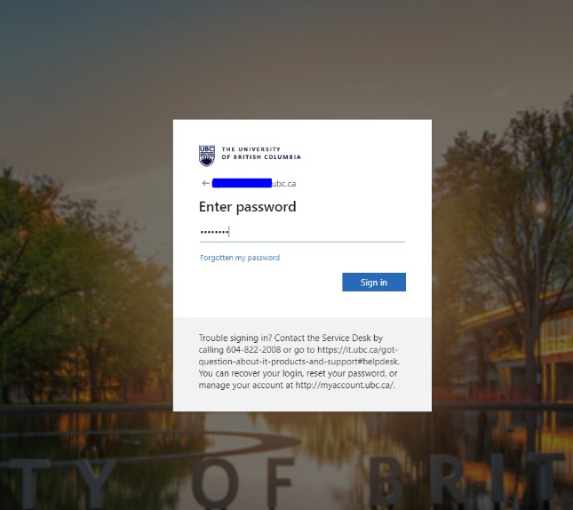 - For staff and faculty, login with your firstname.lastname@ubc.ca. For students, login with your cwl@student.ubc.ca.