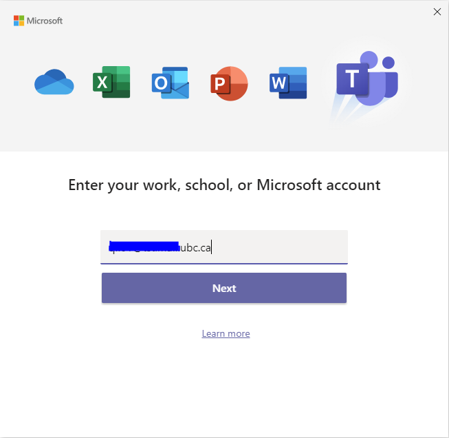 - For staff and faculty, enter in your firstname.lastname@ubc.ca and click Next.