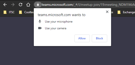 First time guest users will see the following window that will populate from your browser asking for permission to use your microphone and camera for audio and video conferencing purposes. Kindly click on "Allow" to proceed with the meeting.