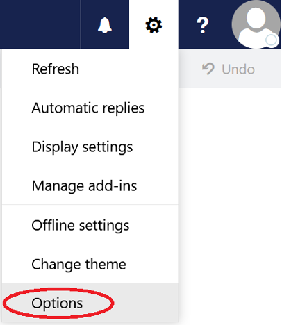 - Click on the cog in the upper right corner of the window and select "Options" from the drop-down menu.