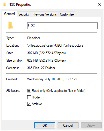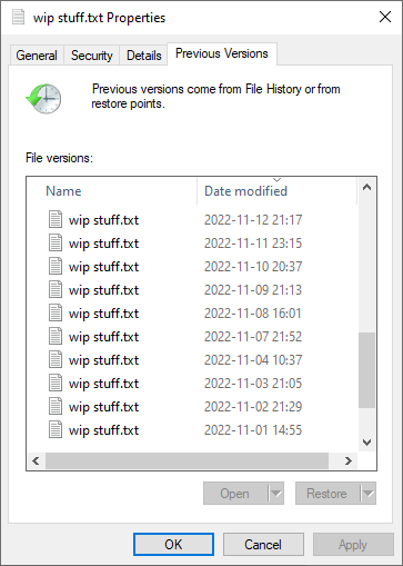 5. In the Propertieswindow, choose the Previous Versions Tab