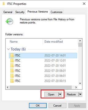 1. To examine a particular version, select the version and click Open; the item will be opened as read-only.