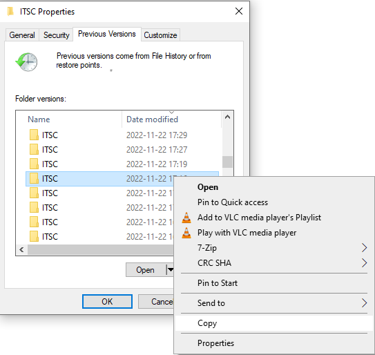 • To copy the older version of the folder to another spot, right clickon the folder then select Copy