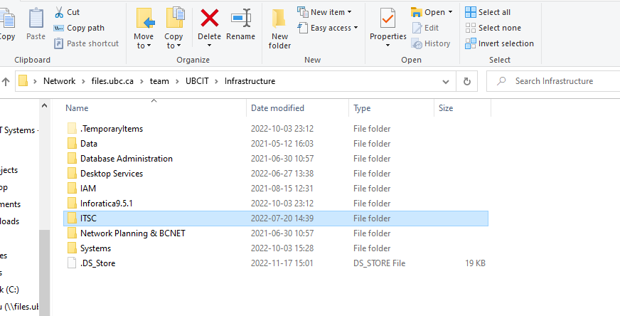- In your TeamShare drive, find the folder containing the file(s) you want to restore