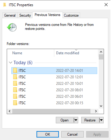 Important: Using the "Restore" option in this process will overwrite ALL the files in a given folder. If you are only trying to restore certain files in a specific folder, use the Copy function to copy the folder to a different location.