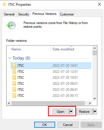 - To examine a particular version, select the version and click Open; the item will be opened as read-only.